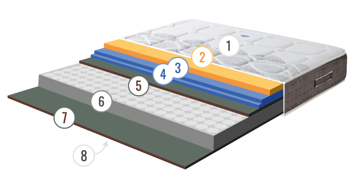 Dos capas superiores de AirDream R y una de viscoelástica de alta densidad proporcionan un mayor confort y adaptabilidad sin perder la firmeza que nos aportan los muelles ensacados del núcleo del colchón.
